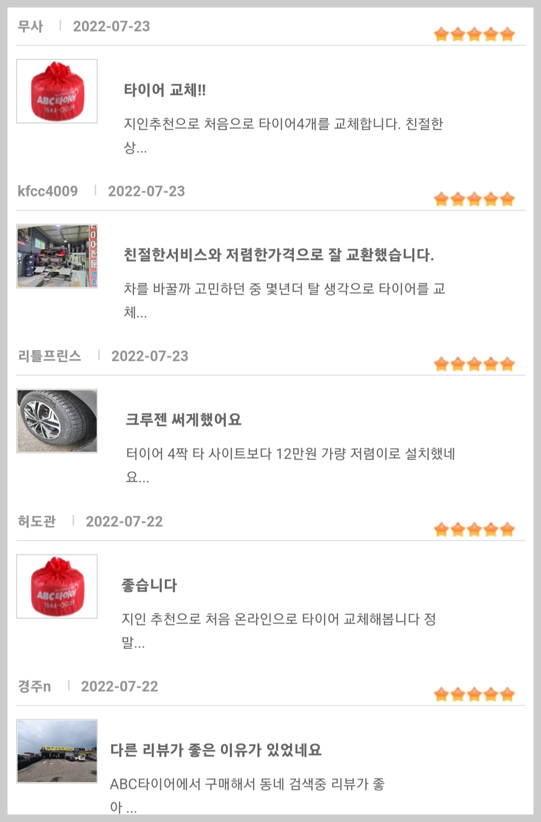 "ABC타이어"가 가장 저렴했던 것 같아요.